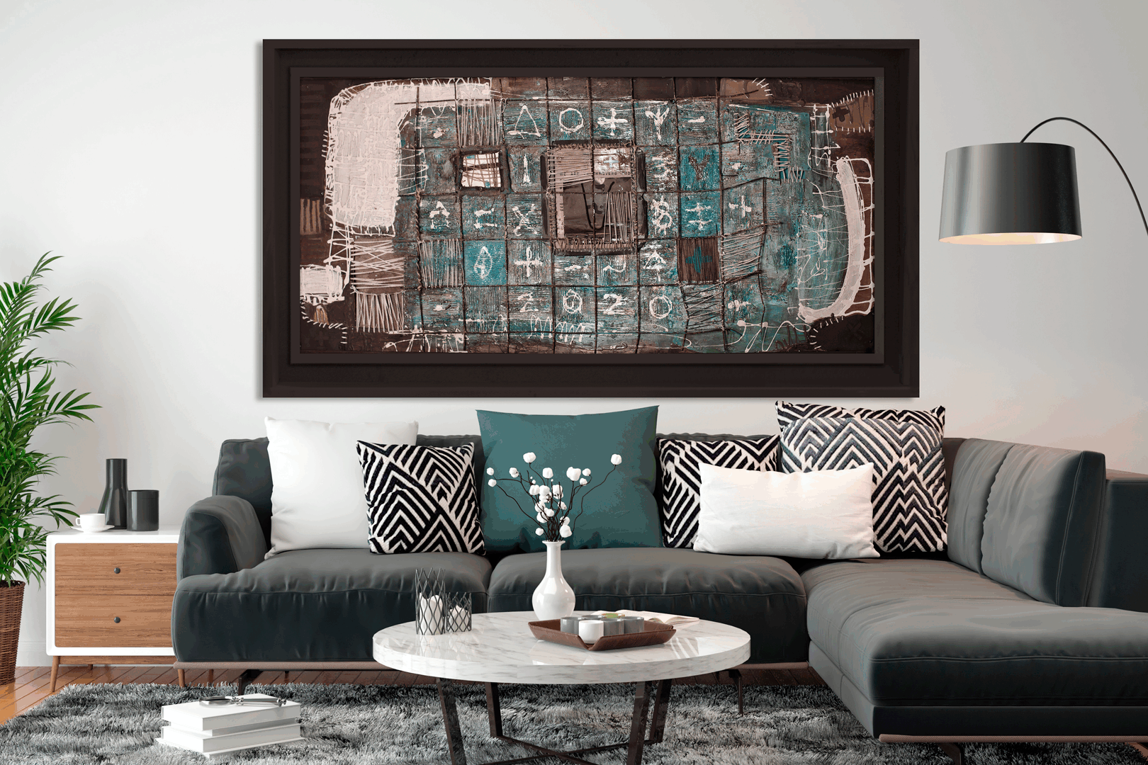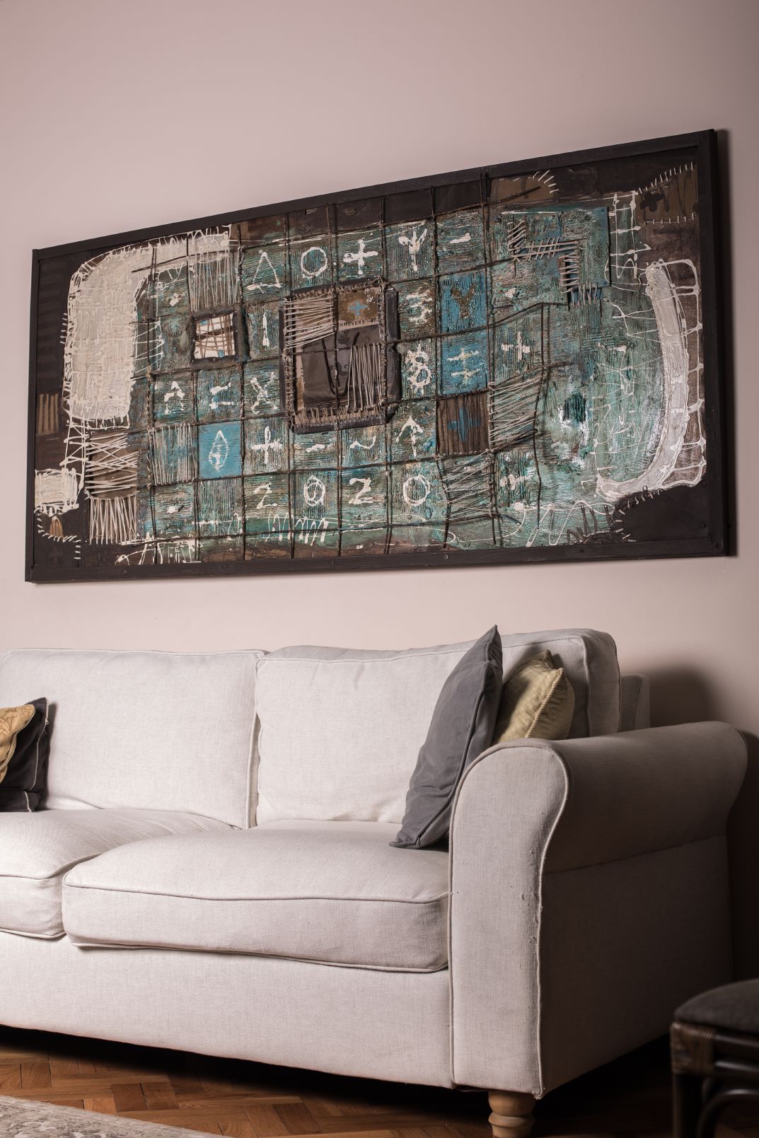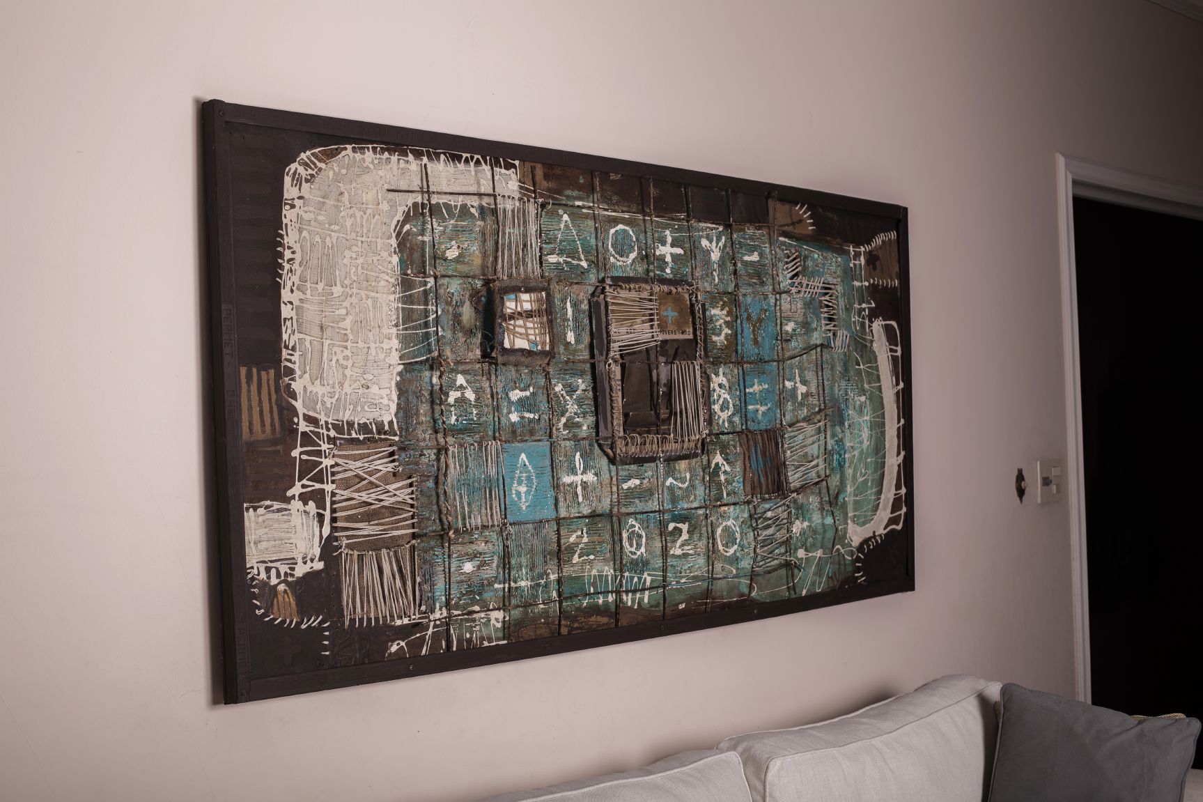 Encierros surge en la pandemia, en condiciones de aislamiento y encierro. Una malla de hierro configura distintas celdas con símbolos y números.