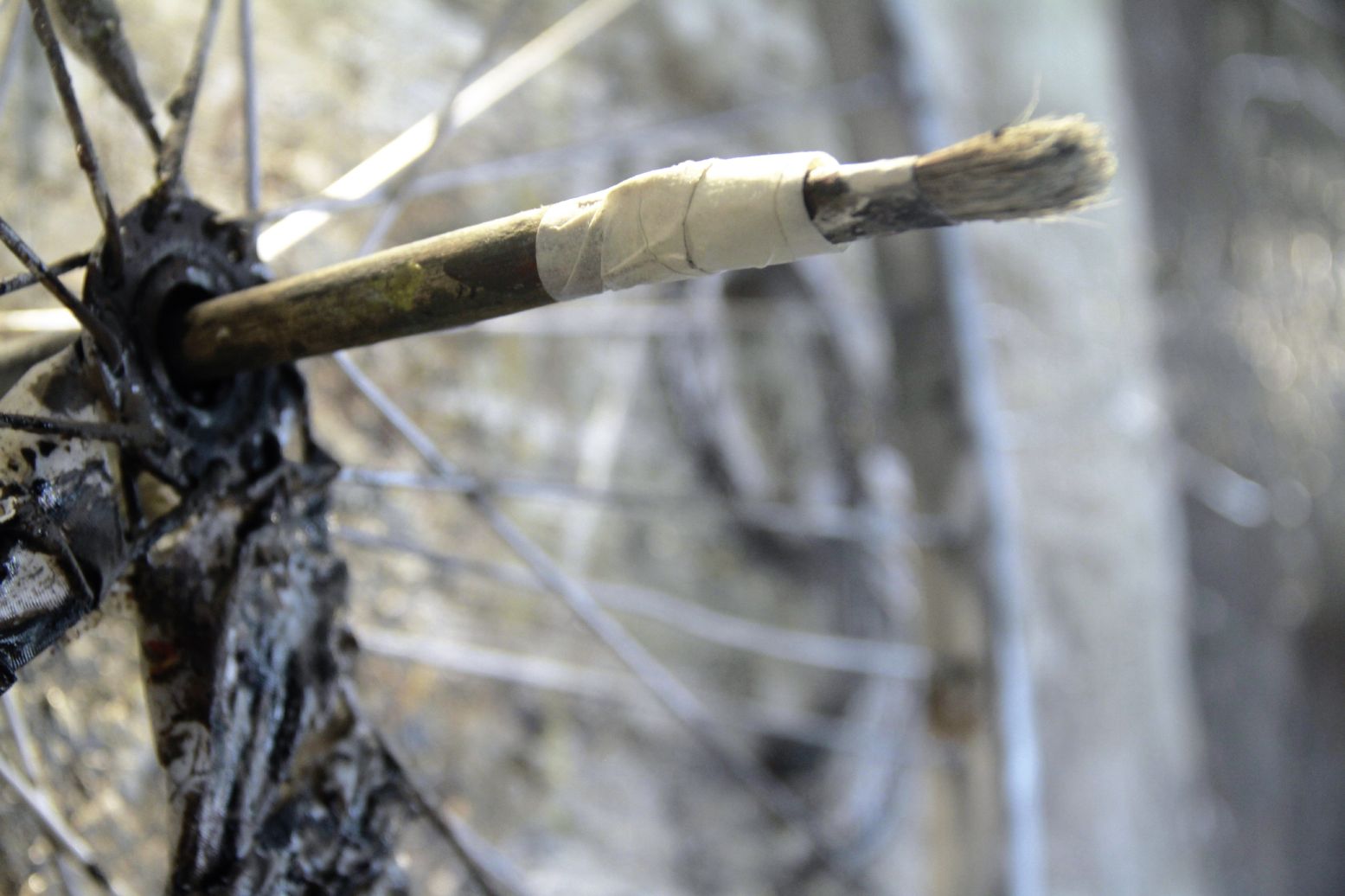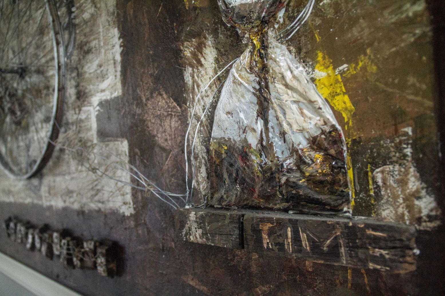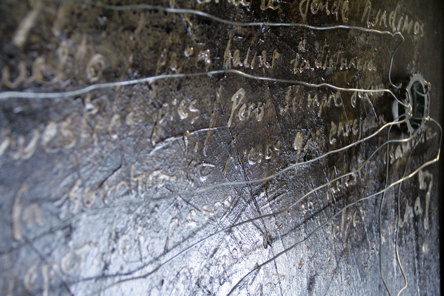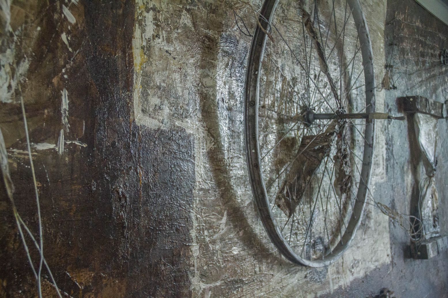 Una suerte de reloj en una celda blanca. Avanza como un rueda e irá oxidando con los años. Distintos relojes y versos descansan sobre esta madera que tendrá al tiempo como enemigo o aliado. Sólo él, el tiempo, lo sabrá.